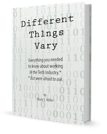 I’ve committed to myself to finish a book that I’ve been taking notes on for a few years. “Different Things Vary” reflects the experiences and techniques I’ve gathered from four decades as a developer in the Tech Industry. It will cover everything from coding techniques to going out on your own as a freelancer or entrepreneur, as well as getting into management, and the lifestyle of an engineer.